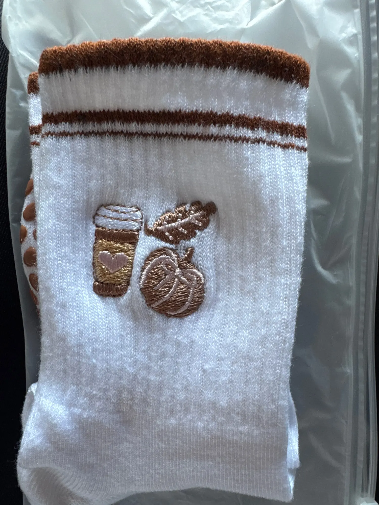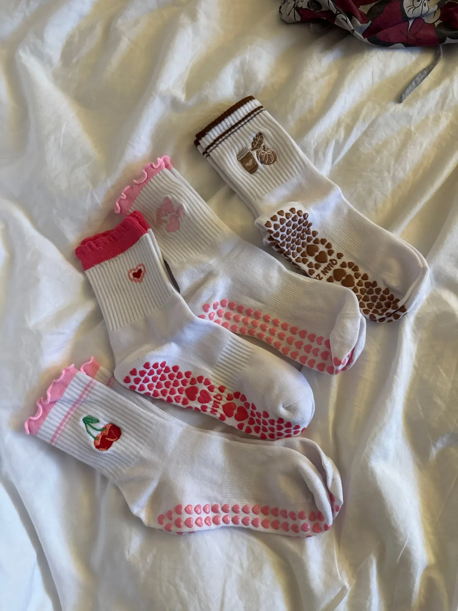 Breathable stitch-knit grip socks offering reliable traction and soft all-day comfort.